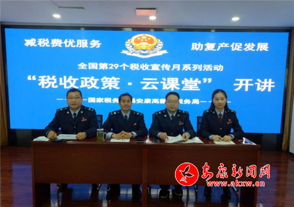 區(qū)局黨委委員、副局長張平同志表示,“在全國29個收稅宣傳月活動中,安康高新區(qū)稅務局聚焦“減稅費優(yōu)服務 助復產促發(fā)展”主題,持續(xù)唱響“便民辦稅春風行”行動,借助云課堂的形式迅速將稅費大禮包送到納稅人手中,以實際行動努力當好企業(yè)復工復產的服務員?!?/p>