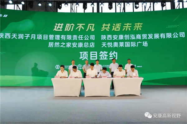 陜西天潤子月項(xiàng)目管理有限責(zé)任公司分別與陜西安康創(chuàng)泓商貿(mào)發(fā)展有限公司、居然之家安康總店、天悅奧萊國際廣場(chǎng)簽訂了戰(zhàn)略合作協(xié)議。