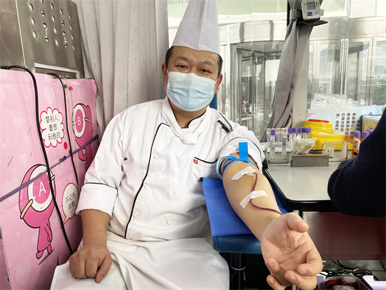 酒店廚師長段斌已經(jīng)是第五次進行無償獻血了,他說,希望大家在身體條件允許的情況下,捐獻熱血、溫暖他人。