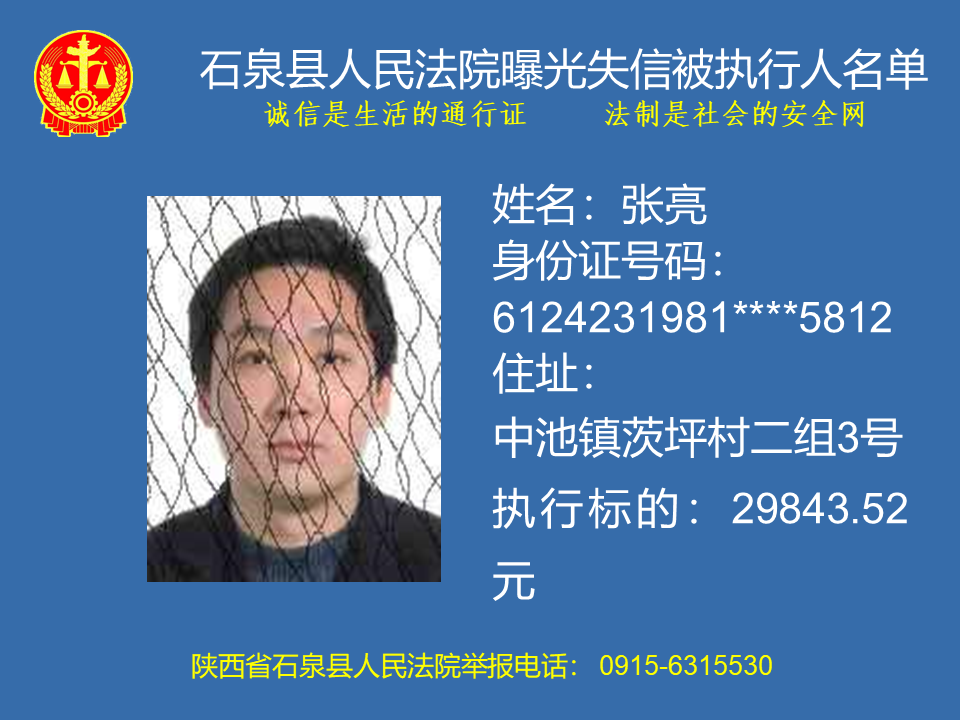 曝光失信 | 石泉縣人民法院曝光失信被執(zhí)行人名單(2023年第六期)