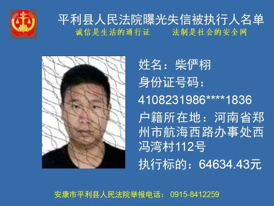 曝光失信 | 平利縣人民法院曝光失信被執(zhí)行人名單(2023年第四期)