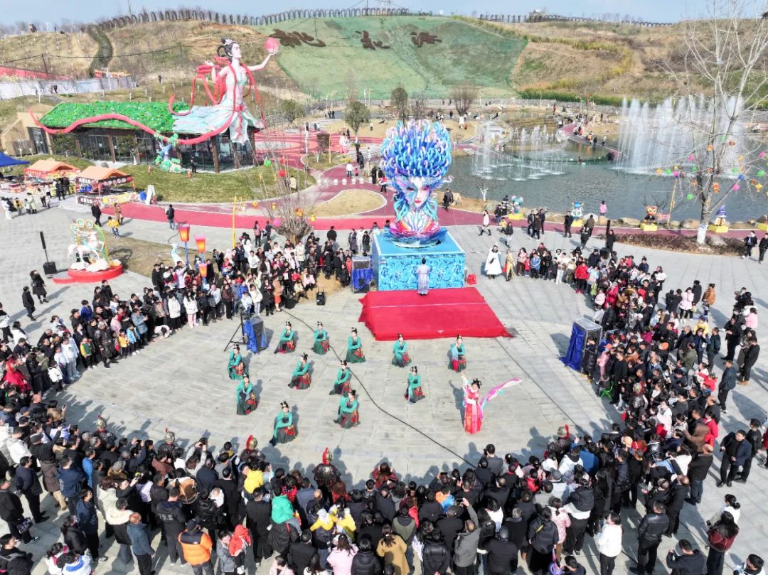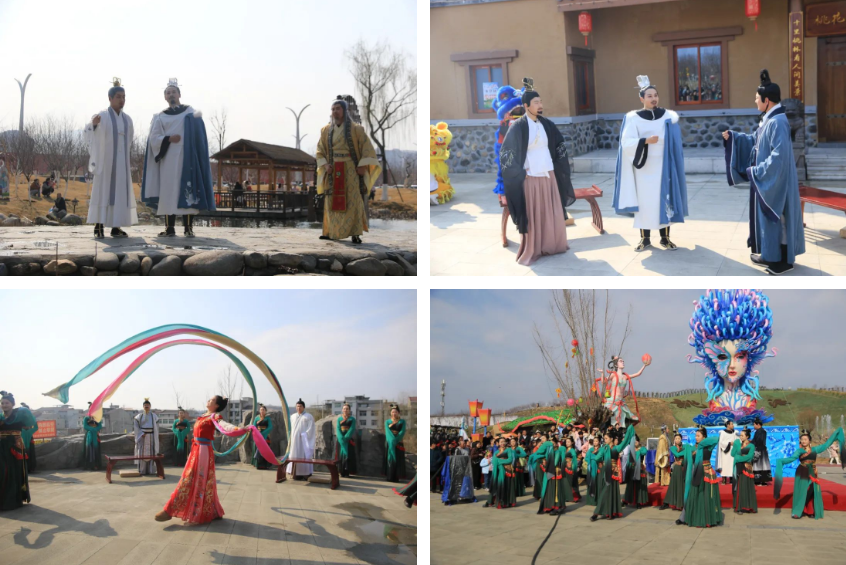 豐收大秧歌、龍騰腰鼓隊(duì)、喜慶蓮響、彩船、花轎大聯(lián)歡、社火、小場子戲等精彩的傳統(tǒng)民俗節(jié)目在桃花源相繼上演。新穎的編排、精彩的表演,令現(xiàn)場游客大飽眼福,叫好聲、喝彩聲此起彼伏。當(dāng)天近25000余名市民游客前往桃花源觀看表演、打卡游園,處處洋溢著“歡歡喜喜過大年”的節(jié)日氣氛。