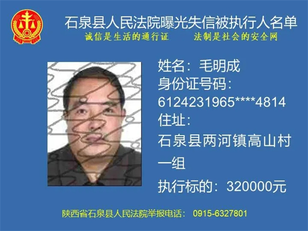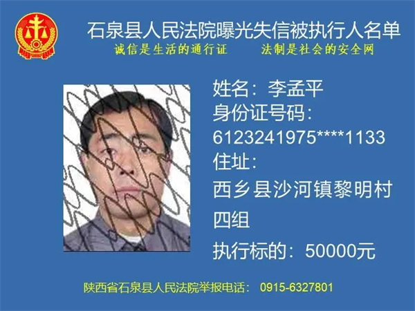 曝光失信 | 石泉縣人民法院曝光失信被執(zhí)行人名單(2024年第一期)