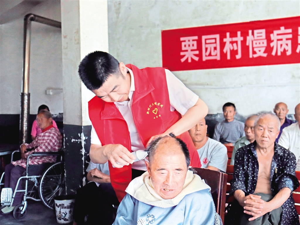 為弘揚(yáng)中華民族“孝老、敬老、愛老”傳統(tǒng)美德,8月7日,白河縣西營(yíng)鎮(zhèn)機(jī)關(guān)黨支部組織黨員來(lái)到西營(yíng)鎮(zhèn)區(qū)域敬老院開展“弘揚(yáng)孝義善舉 倡導(dǎo)文明鄉(xiāng)風(fēng)”志愿服務(wù)活動(dòng)?;顒?dòng)中,志愿者們?yōu)槔先藗兲峁┝烁啐g補(bǔ)貼認(rèn)證、修剪指甲、打掃衛(wèi)生等志愿服務(wù)。(劉焱 胡曉華 攝)