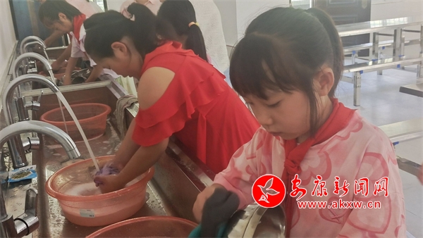 自己動手,豐衣足食。全體學生輪流為大家就餐服務,服務學生在早晨課前時間全程參與監(jiān)督廚房食材的出庫、加工、留樣過程;在午餐前15分鐘來到餐廳為同學打飯、端菜,在就餐結束后全體學生一起清洗餐具、打掃廚房;并做好每日食堂就餐服務日志。