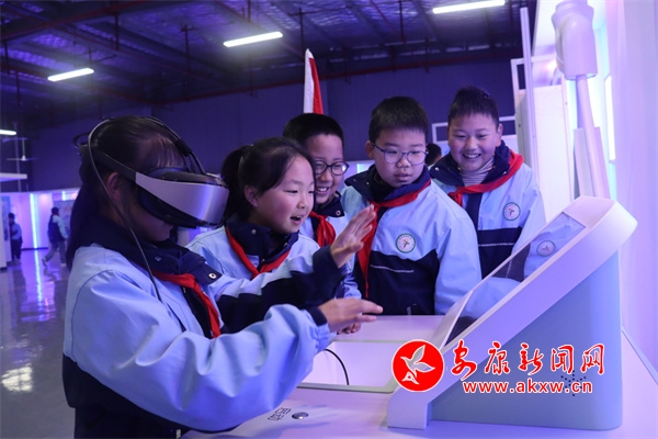 在科技館內(nèi),學生們在講解員的引導下,開啟了“沉浸式”科學之旅,近距離接觸機器人、VR、人工智能等前沿科技展品。智能機器人靈巧的舞蹈動作引得孩子們陣陣歡呼;VR體驗區(qū)里,學生們戴上設(shè)備“穿越”到宇宙星空,感受科技的神奇魅力;學生們還通過參觀“節(jié)水之旅 我們在行動”等主題板塊展品,親手操作實驗設(shè)備,感受到了科技對生活的深刻影響。走進氣象站,學生們跟隨氣象工作人員,參觀了氣象科普長廊,閱覽二十四節(jié)氣對生產(chǎn)生活的影響。在氣象觀測場,近距離觀察風向風速傳感器、天氣現(xiàn)象儀器等設(shè)備。