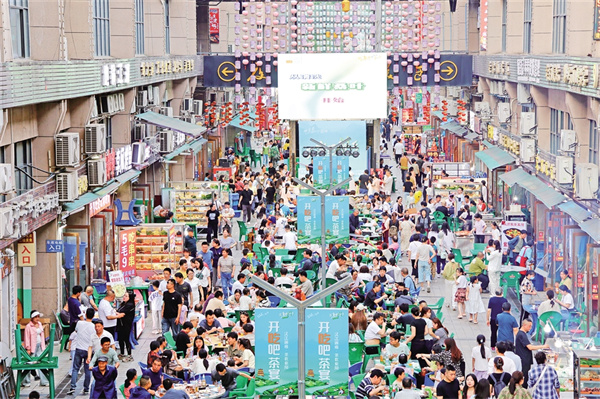 “五一”期間,紫陽縣紫邑新城美食街區(qū)開展了特色文旅活動(dòng),吸引游客紛至沓來。 鄭曉虎 攝
