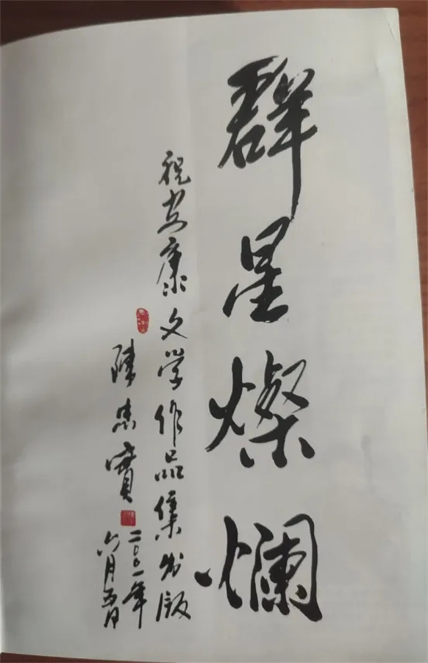 2001年5月下旬,我主編的《安康作家優(yōu)秀作品選》基本成型,編錄的有80多萬字,包括本市的中國作協(xié)、省作協(xié)、市作協(xié)會員180多人,原稿厚厚的一尺多高一墩了。出版前我想得有個壓軸的,便把一大包作品復(fù)印件不打招呼、就徑直寄給陳忠實,附信說請他寫個序。大約一個星期就收到陳忠實回信,說我做了件好事、有的地市還沒有這樣弄過;說他太忙,作品倒是大概看了、安康他知道的作家都在里面,還行。但是太忙、實在沒有時間再仔細(xì)看,也就不好寫序,務(wù)必諒解……末了,那寄給他的復(fù)印件都沒退,倒是給寄來了橫的、豎的,長短大小不一的、毛筆書寫在宣紙上的幾種形式的題詞“群星燦爛——祝安康文學(xué)作品集出版 陳忠實 二00一年六月五日”,每張題詞的宣紙還折疊得棱角分明、上下對稱。收到后,我的心里重騰騰的,想陳老漢下的功夫不小哩,只怕不比花費(fèi)一兩個小時、走馬觀花地寫個洋洋灑灑的三兩千字的序省事!《安康作家優(yōu)秀作品選》當(dāng)年出版后,有了反響、也有了結(jié)余。我專門委托在西安一雜志社打工的本土青年作者洪曉晴去西安找陳忠實,送上3本書、并送上500元潤筆費(fèi)。不料、陳忠實見了書高興,但堅決不收這500元,并又給我來了一封信,解釋說文人都窮、出個書不容易哩!最后,信的結(jié)尾,陳忠實又幾乎是批評我,說我得有自己的創(chuàng)作哩!看來,陳忠實固然支持和欣賞編輯這種區(qū)域性系統(tǒng)性的作品集,但他更希望看到文學(xué)作者創(chuàng)作出具有個體生命體驗及其獨(dú)特感悟的作品,文學(xué)的靈魂和生命,畢竟是創(chuàng)造。