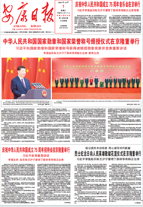 (2024年10月1日安康日?qǐng)?bào)01版“中華人民共和國(guó)國(guó)家勛章和國(guó)家榮譽(yù)稱(chēng)號(hào)頒授儀式在京隆重舉行”)