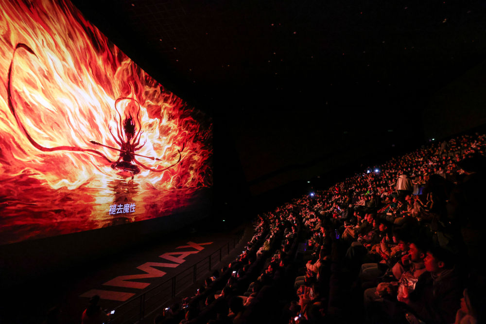 2025年2月25日,觀眾在貴陽越界影城IMAX影廳內(nèi)觀看電影《哪吒之魔童鬧?!?。動(dòng)畫電影《哪吒之魔童鬧?!纷?月29日上映后票房一路高歌猛進(jìn),僅用8天便登頂中國影史票房榜,隨后成為全球單一市場票房冠軍、全球動(dòng)畫電影票房冠軍。2025年以來,國家電影局等相繼啟動(dòng)“跟著電影品美食”“跟著電影去旅游”“中國電影消費(fèi)年”活動(dòng),充分發(fā)揮電影對(duì)提振消費(fèi)的積極作用;各地文旅部門等通過發(fā)布觀影消費(fèi)券、舉辦主題活動(dòng)等形式推動(dòng)影旅融合,發(fā)展票根經(jīng)濟(jì)。