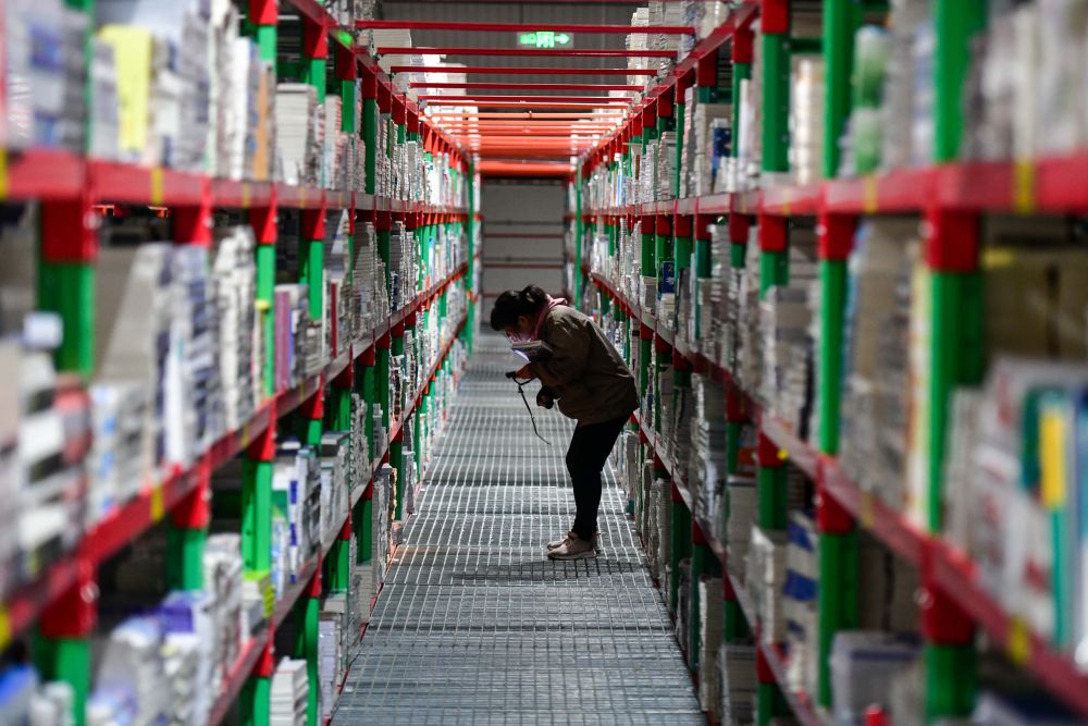 2025年2月19日,工作人員在泰安新聞出版小鎮(zhèn)圖書倉庫內(nèi)整理書籍。近年來,山東省泰安市立足出版印刷產(chǎn)業(yè)優(yōu)勢,打造泰山新聞出版小鎮(zhèn),通過拉長壯大產(chǎn)業(yè)鏈,推動(dòng)產(chǎn)業(yè)集聚發(fā)展,構(gòu)建龍頭引領(lǐng)、鏈條延伸、集群共進(jìn)的出版印刷產(chǎn)業(yè)“雁陣”。目前,小鎮(zhèn)已吸引60余家企業(yè)入駐,涵蓋編輯出版、印刷發(fā)行、倉儲(chǔ)物流、版權(quán)交易、研學(xué)旅游等產(chǎn)業(yè)鏈各環(huán)節(jié)。