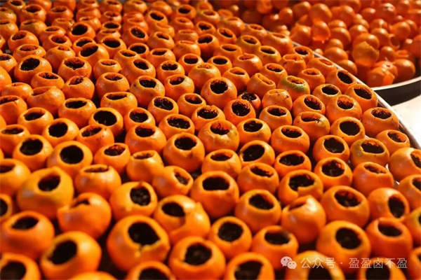 茶廠的工人們早已忙碌起來。他們將一個(gè)個(gè)挑選好的金錢桔仔細(xì)清洗掉表面的灰塵。特制的小刀輕輕掀開桔帽,果肉被小心掏出,留下一個(gè)完整的桔殼,然后再小心翼翼地清洗8至10次,直到桔皮的苦澀味兒全部去掉才能進(jìn)行攤涼。那認(rèn)真的模樣仿佛在對待一件件珍貴的藝術(shù)品,陽光透過窗欞,照在攤涼的桔殼上,泛著琥珀般的光澤。