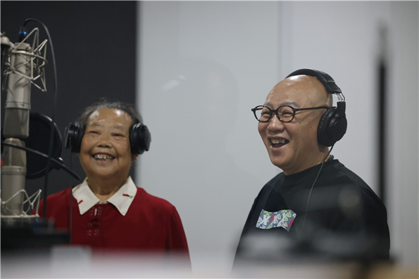 音樂人李杰(左)和紫陽民歌省級傳承人何耀信(右)