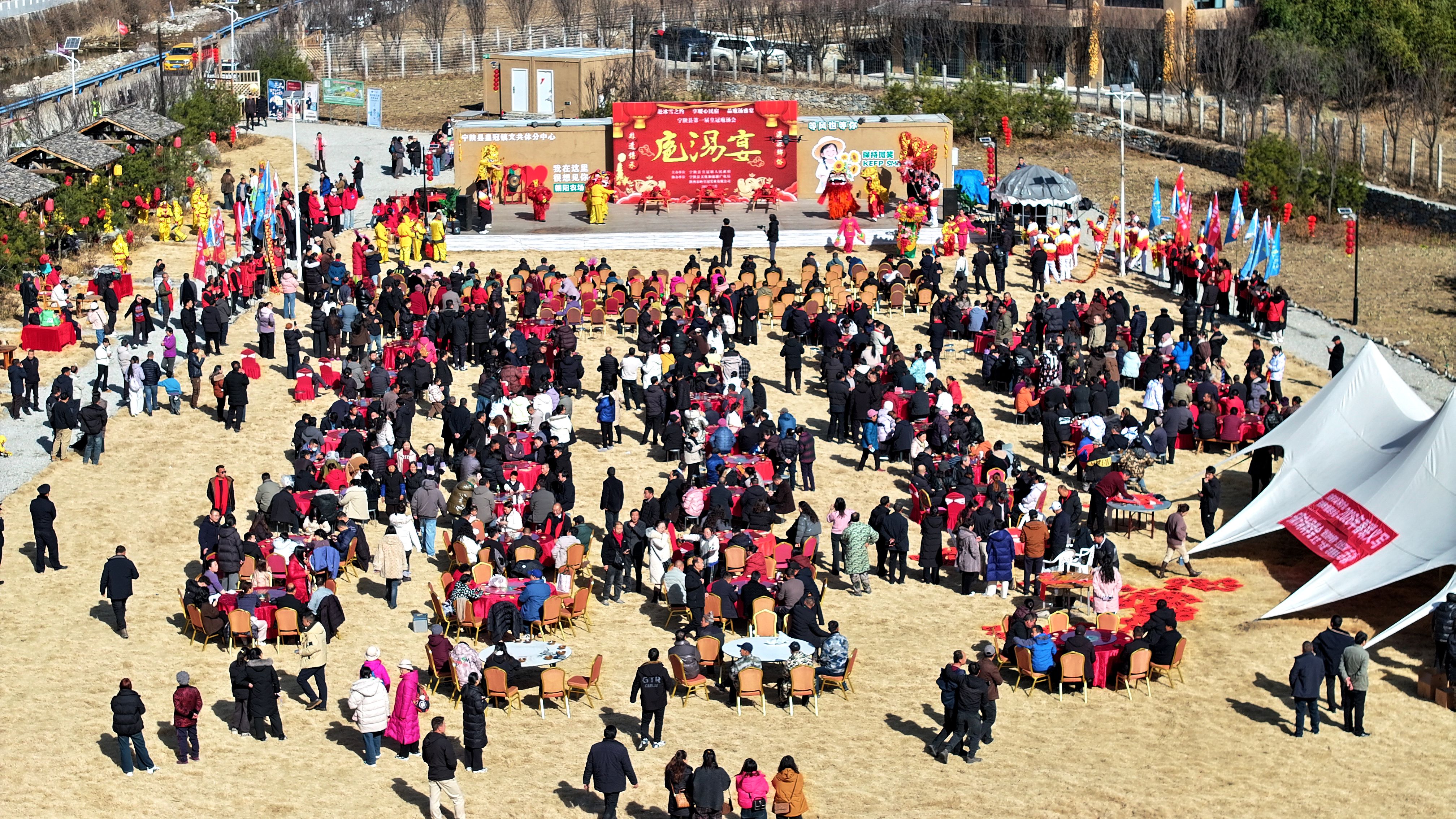 文化賦能是寧陜冬春旅游的核心亮點。1月16日,皇冠鎮(zhèn)朝陽農場里首屆皇冠庖湯會熱鬧開席,《二嫂夸皇冠》的表演點燃現場氛圍,舞獅、彩船等傳統(tǒng)民俗輪番上演,莊重的祭天儀式傳遞著農耕文明的厚重?;顒蝇F場墨香陣陣,鄉(xiāng)土菜肴香氣四溢?!坝玫亩际乾F殺黑豬,味道特別地道?!蓖獾赜慰徒抠澆唤^口,西安游客葉格芳也直言:“專程前來,不虛此行?!贝舜吴覝珪参慰?300余人,實現旅游消費30萬元。