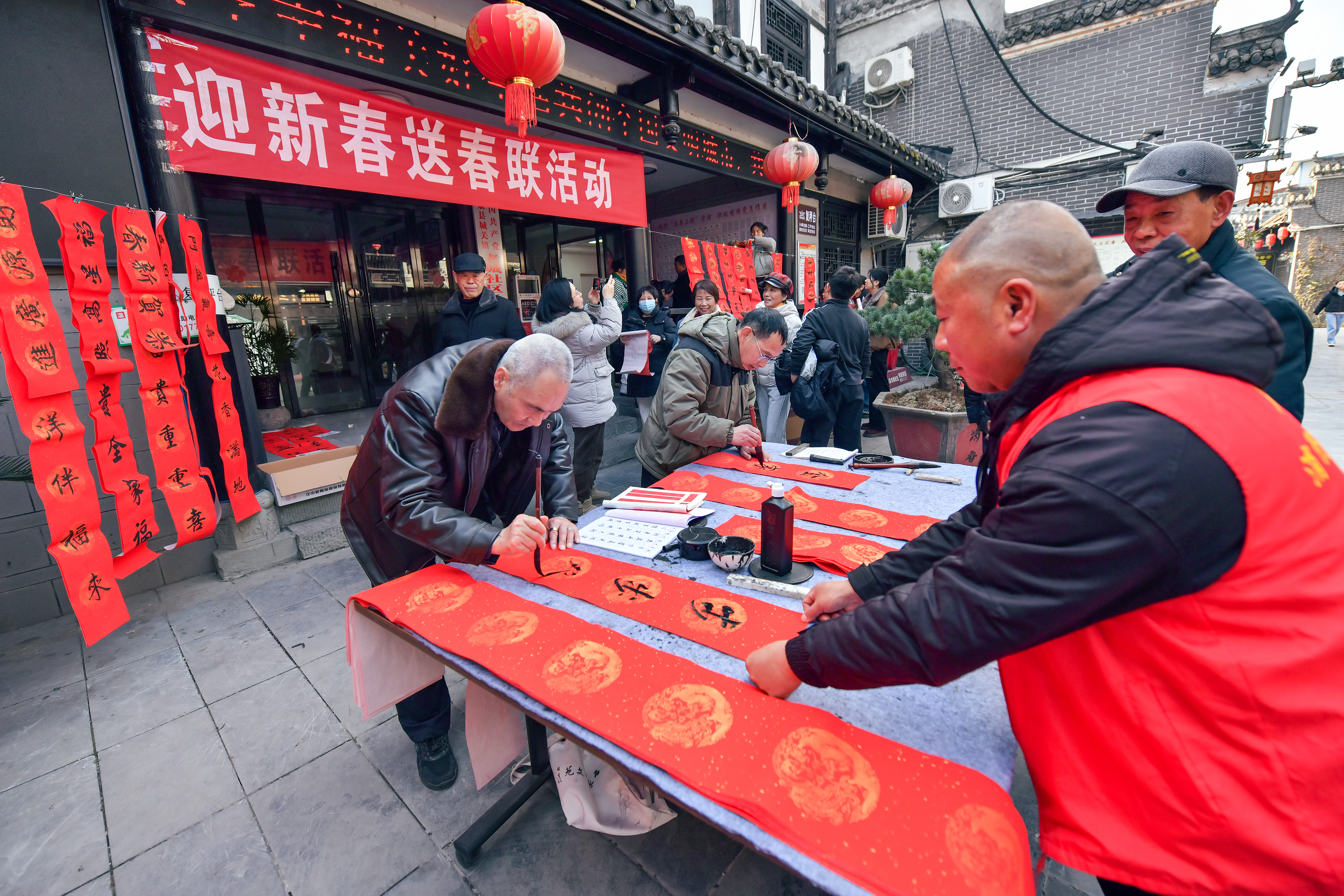 2月2日,石泉縣城關(guān)鎮(zhèn)老城社區(qū)新時(shí)代文明實(shí)踐站組織開展義寫春聯(lián)活動(dòng)。書法愛好者現(xiàn)場揮毫,為居民送上新春祝福?;顒?dòng)共送出春聯(lián)200余副。董長松 攝