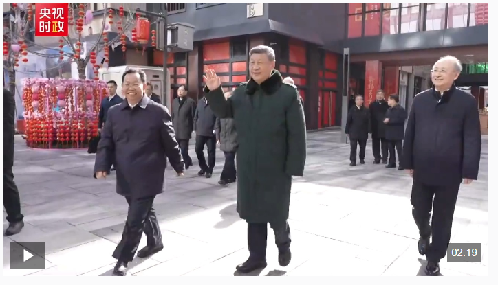 2月10日上午,在北京考察調(diào)研的習(xí)近平總書記來到隆福寺街區(qū),了解當(dāng)?shù)刎S富節(jié)日市場(chǎng)供應(yīng)、打造城市特色活力片區(qū)等情況,看望慰問基層干部群眾。這一天恰逢農(nóng)歷小年,隆福大廈前,新春市集吸引了大量市民和游客。習(xí)近平饒有興致察看各式年貨攤位,同現(xiàn)場(chǎng)群眾親切交流。
