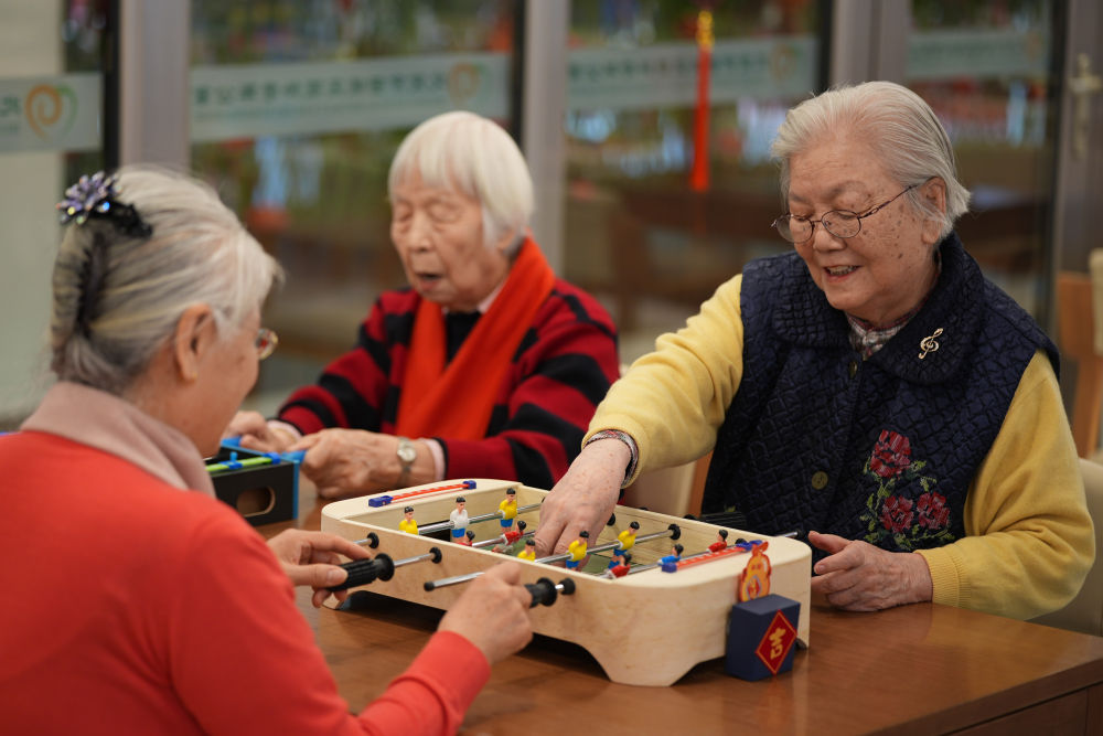 2月10日,社區(qū)內(nèi)老年人玩益智游戲。
