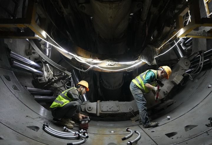 中鐵十八局集團工人在石家莊市地鐵5號線一期工程01工區(qū)建設(shè)工地施工(2025年10月24日攝)。新華社記者 楊世堯 攝