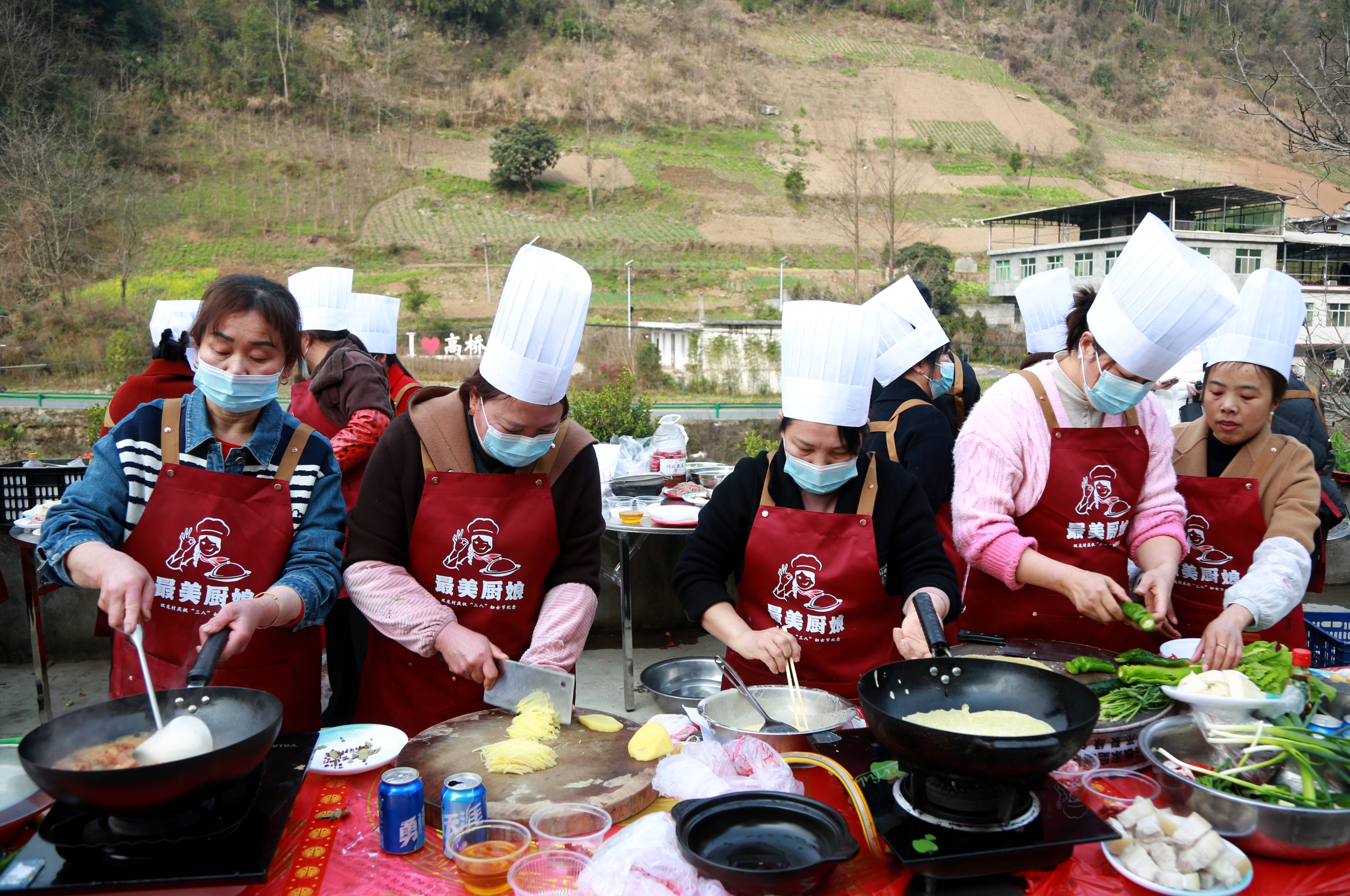 紫陽縣高橋鎮(zhèn)雙龍村舉行最美廚娘爭霸賽,歡慶“三八”國際勞動?jì)D女節(jié)。李謝軍 攝