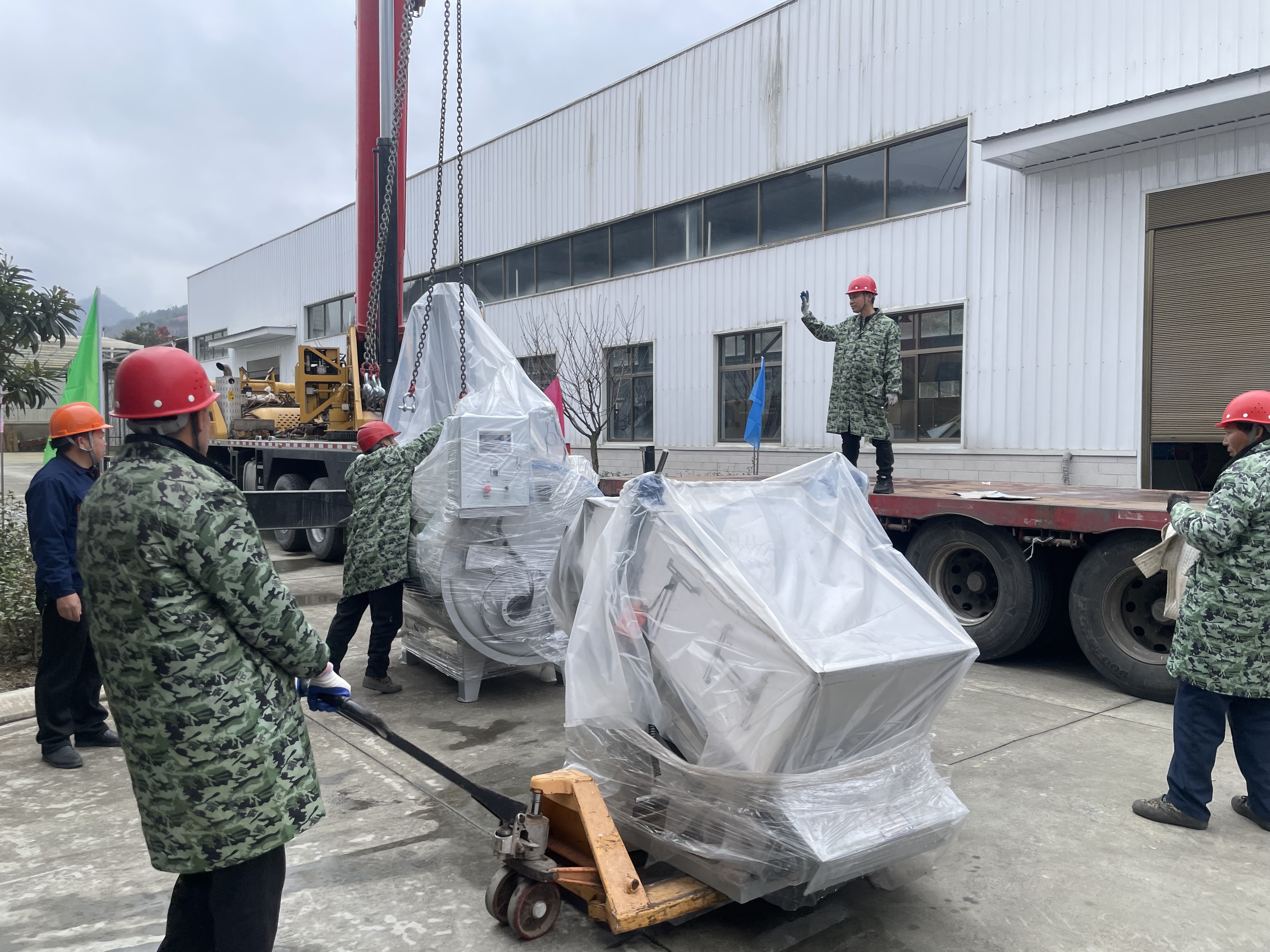 走進平利硒地抹茶茶業(yè)有限公司廠區(qū),一派繁忙景象映入眼簾:滿載設備的大型貨車緩緩駛入,吊車揮臂起吊,工人們協同搬運,一件件精密設備被精準定位。從入場指引到吊裝作業(yè),再到設備擺放,各環(huán)節(jié)環(huán)環(huán)相扣、井然有序。